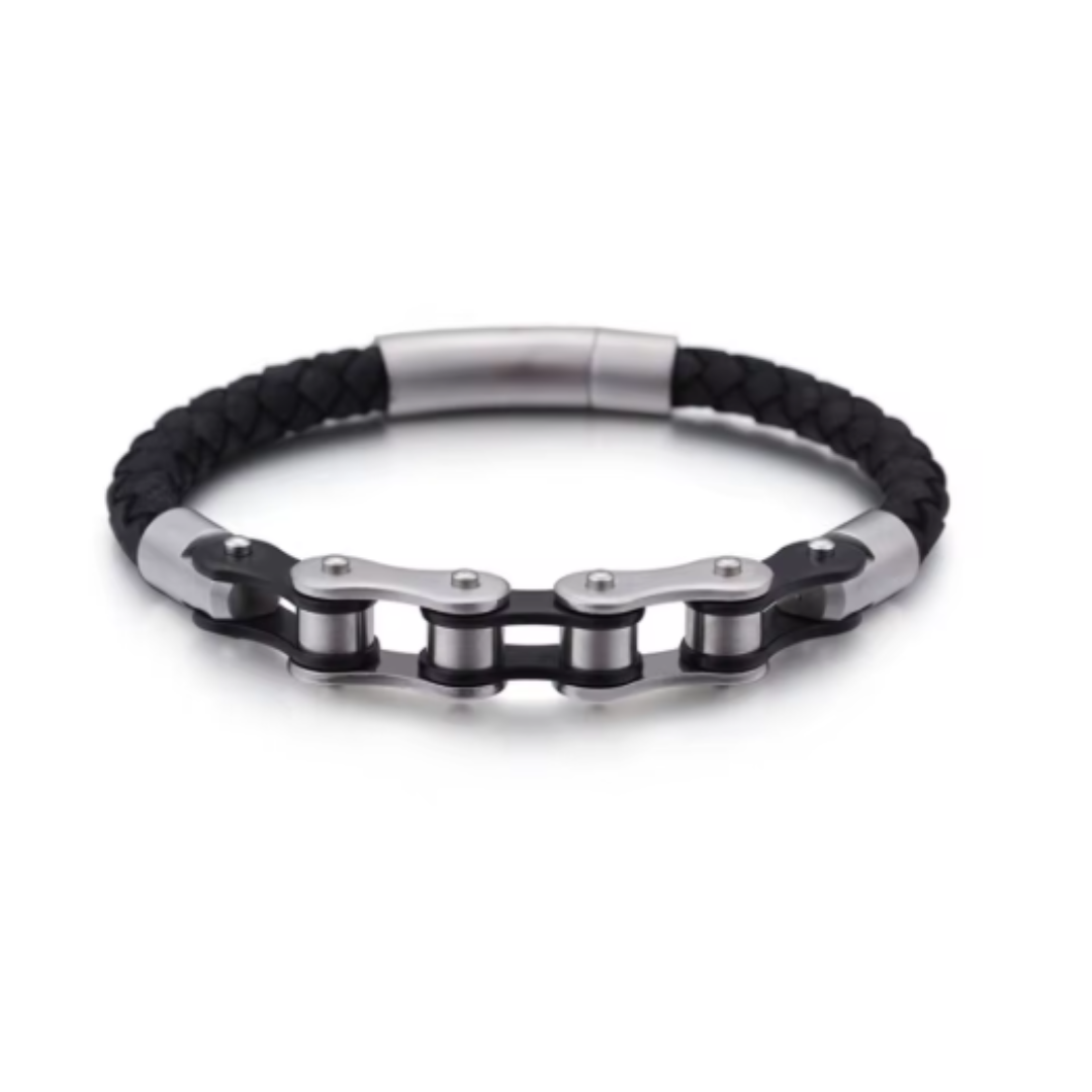 - Tipo de Cadena: Eslabones; La parte en acero inoxidable y Tipo Cuerda Trenzado; La parte en cuero